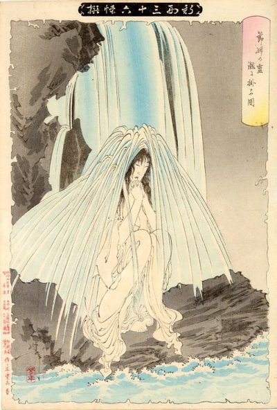 A l'époque Meiji, les histoires fantomatiques étaient particulièrement appréciées, racontées au coin du feu. Yoshitoshi réalisa d'abord "100 estampes de fantômes", mais seules 36 furent sélectionnées lors de la publication. Cette série devint l'une des plus connues de l'auteur. Deux décennies plus tard, il repris cette série, en utilisant de nouvelles techniques artistiques. Il appela cette série "Nouvelles formes des 36 fantômes".