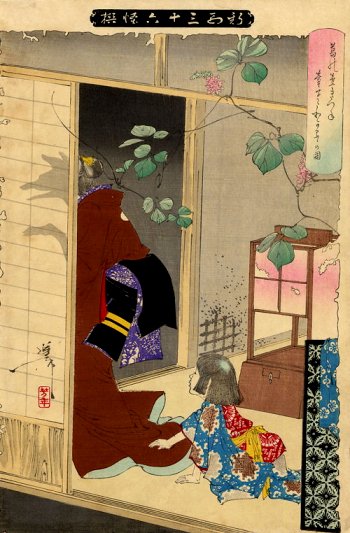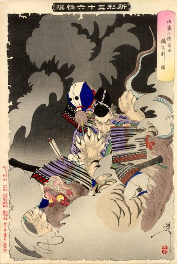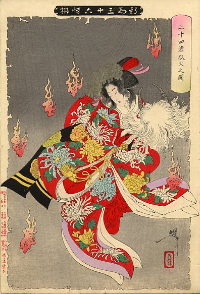 Tsukioka Yoshitoshi (aussi connu sous le nom de Taiso Yoshitoshi), est né à Edo en 1839 et est mort en 1892. Ce fut un des derniers grands maîtres dans l'art qu'exige la création d'estampes. Il vécut au Japon lors d'une période particulièrement troublante, puisque le pays passait à la modernité. Il a vu la perte du savoir faire de nombreuses choses, tels que les estampes traditionnelles.
